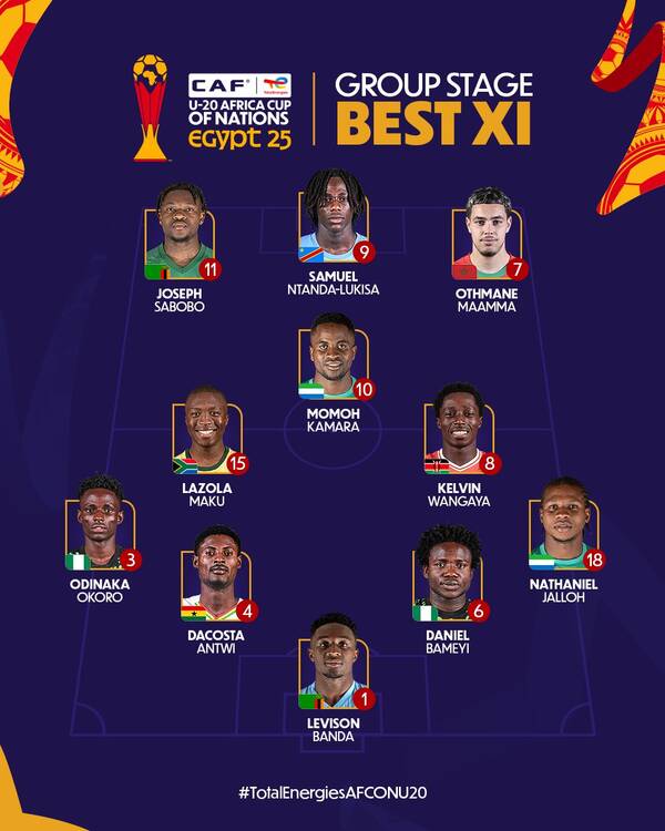 أعلن الاتحاد الأفريقي لكرة القدم، كاف، عن التشكيل المثالي لمرحلة المجموعات ببطولة كأس الأمم الأفريقية تحت 20 عاما، المقامة حاليا في مصر.