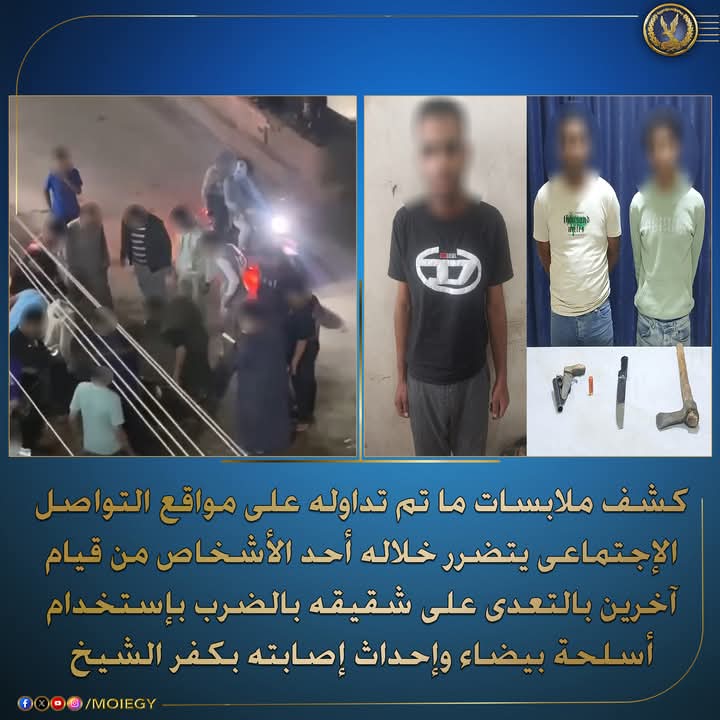 كشفت أجهزة وزارة الداخلية، ملابسات ما تم تداوله عبر مواقع التواصل الاجتماعي، يظهر فيديو لمشاجرة عنيفة وقعت بمحافظة كفر الشيخ، وأسفرت عن إصابة شخصين بأسلحة بيضاء.