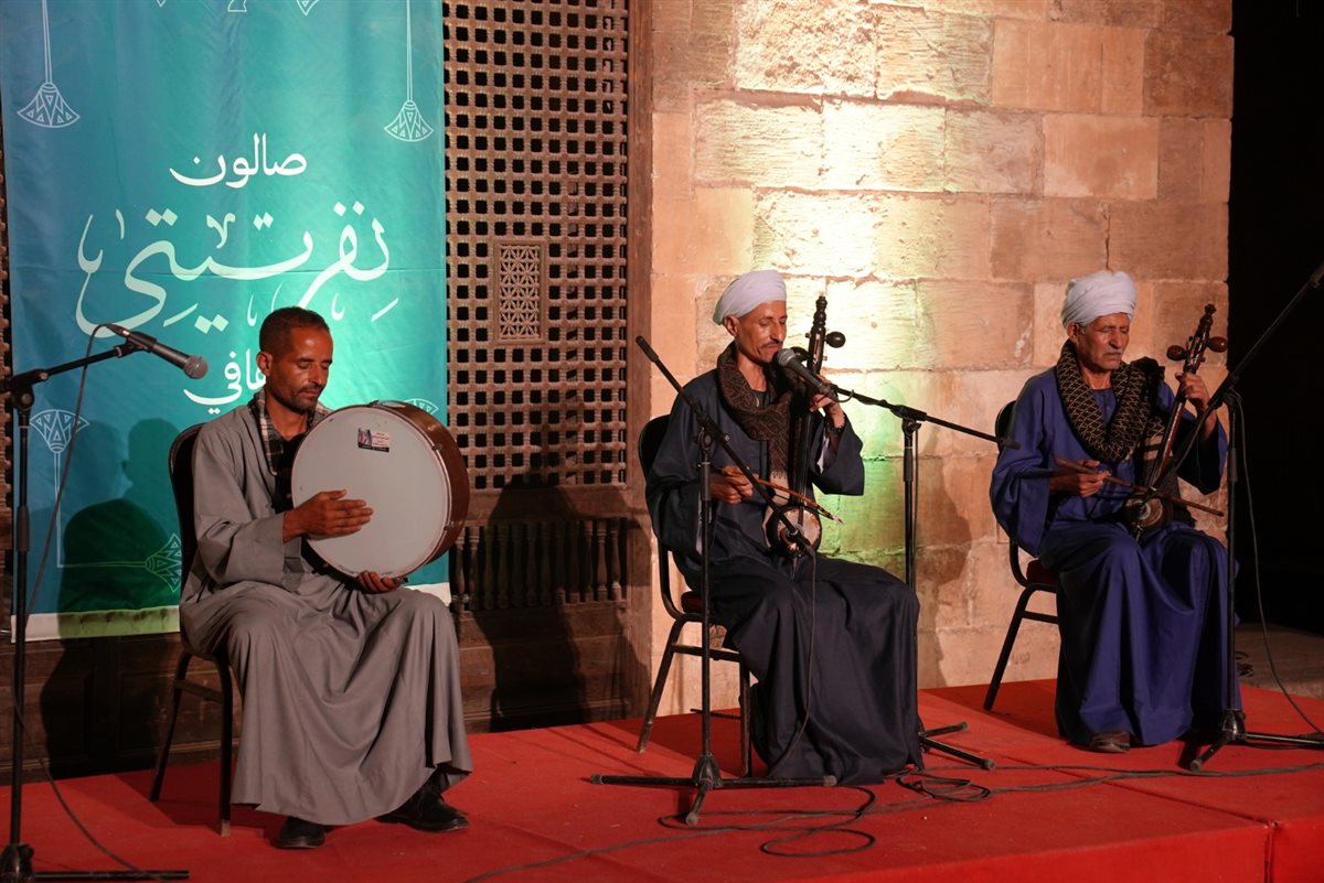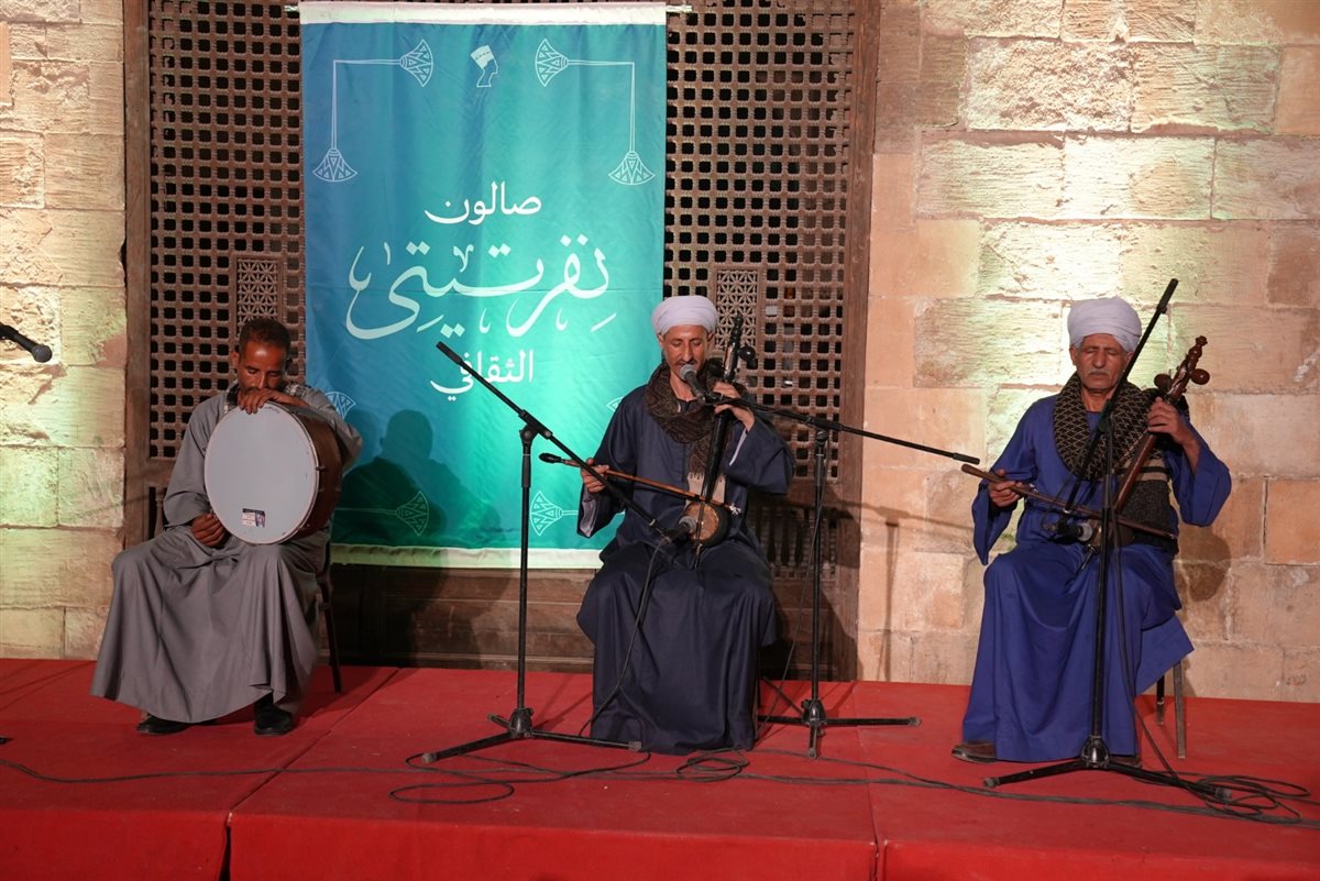 واختتم الصالون احتفاليته بعرض للسيرة الهلالية للشاعر عزت القرشي السوهاجي عازف الربابة وفرقته.
