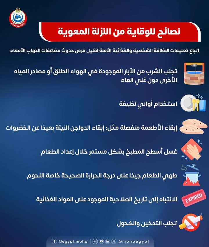 ووجهت وزارة الصحة نصائح للوقاية من النزلة المعوية من خلال اتباع هذه النصائح: