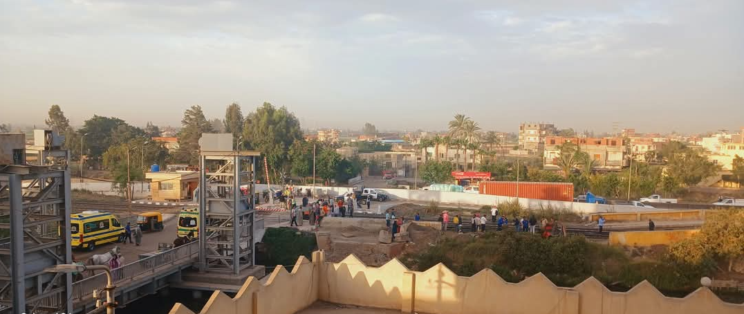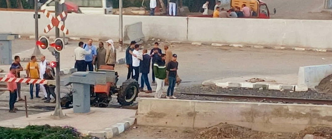 مصرع شخص في اصطدام قطار بجرار زراعي وتعطل الحركة بوجه بحري بالبحيرة (صور)