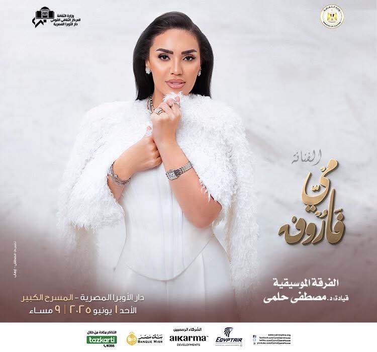 تواصل دار الأوبرا المصرية، برئاسة الدكتور علاء عبد السلام، فعالياتها الهادفة إلى تقديم عروض جادة مميزة تجمع الأصالة بالمعاصرة، حيث تستعد المطربة مي فاروق لإحياء حفل غنائي على المسرح الكبير فى التاسعة مساء الأحد الأول من يونيو المقبل، يقوده المايسترو الدكتور مصطفى حلمى.