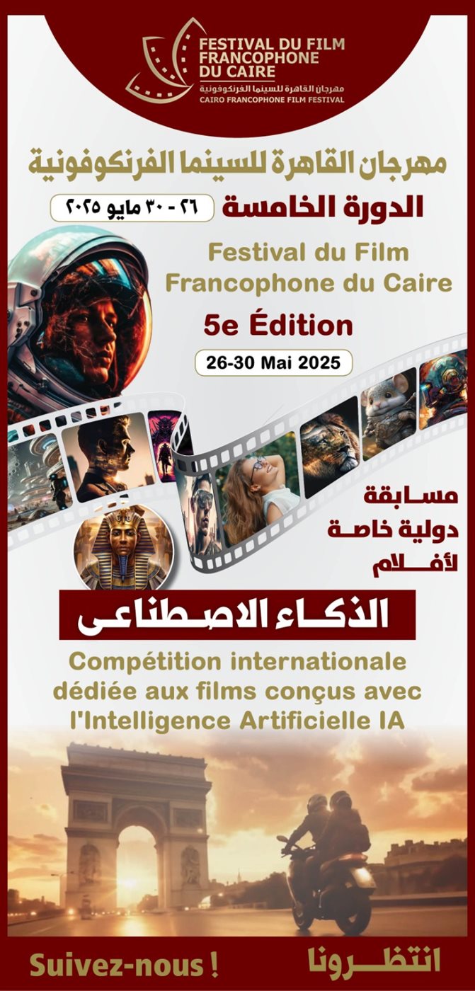 أعلن مهرجان القاهرة للسينما الفرنكوفونية، برئاسة الناقد السينمائي الدكتور ياسر محب، عن إطلاق مسابقة جديدة مخصصة للأفلام المصنوعة باستخدام تقنيات الذكاء الاصطناعي، وذلك ضمن فعاليات الدورة الخامسة للمهرجان، والتي تُقام في الفترة من 26 إلى 30 مايو 2025.