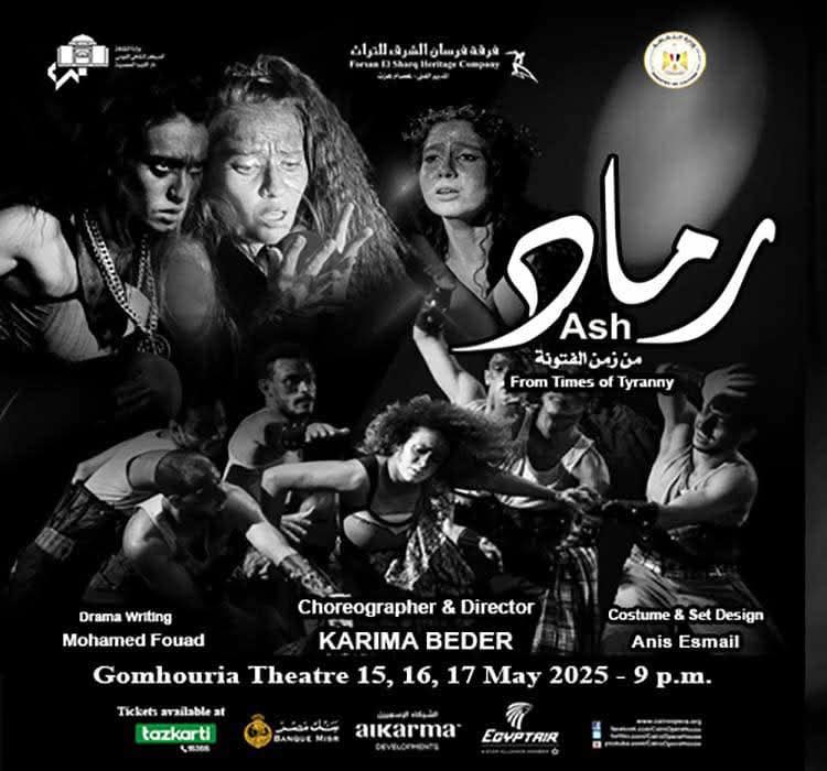 تقدم دار الأوبرا المصرية برئاسة الدكتور علاء عبد السلام عرض (رماد من زمن الفتونة) لفرقة فرسان الشرق للتراث تصميم واخراج كريمة بدير، تأليف دراما محمد فؤاد،تصميم ديكور وملابس أنيس إسماعيل ومخرج منفذ رجوى حامد وبإشراف مديرها الفنى الدكتور عصام عزت وذلك لمدة ٣ ليالى متتالية تبدأ فى التاسعة مساء الخميس، الجمعة والسبت ١٥، ١٦ و١٧ مايو على مسرح الجمهورية.