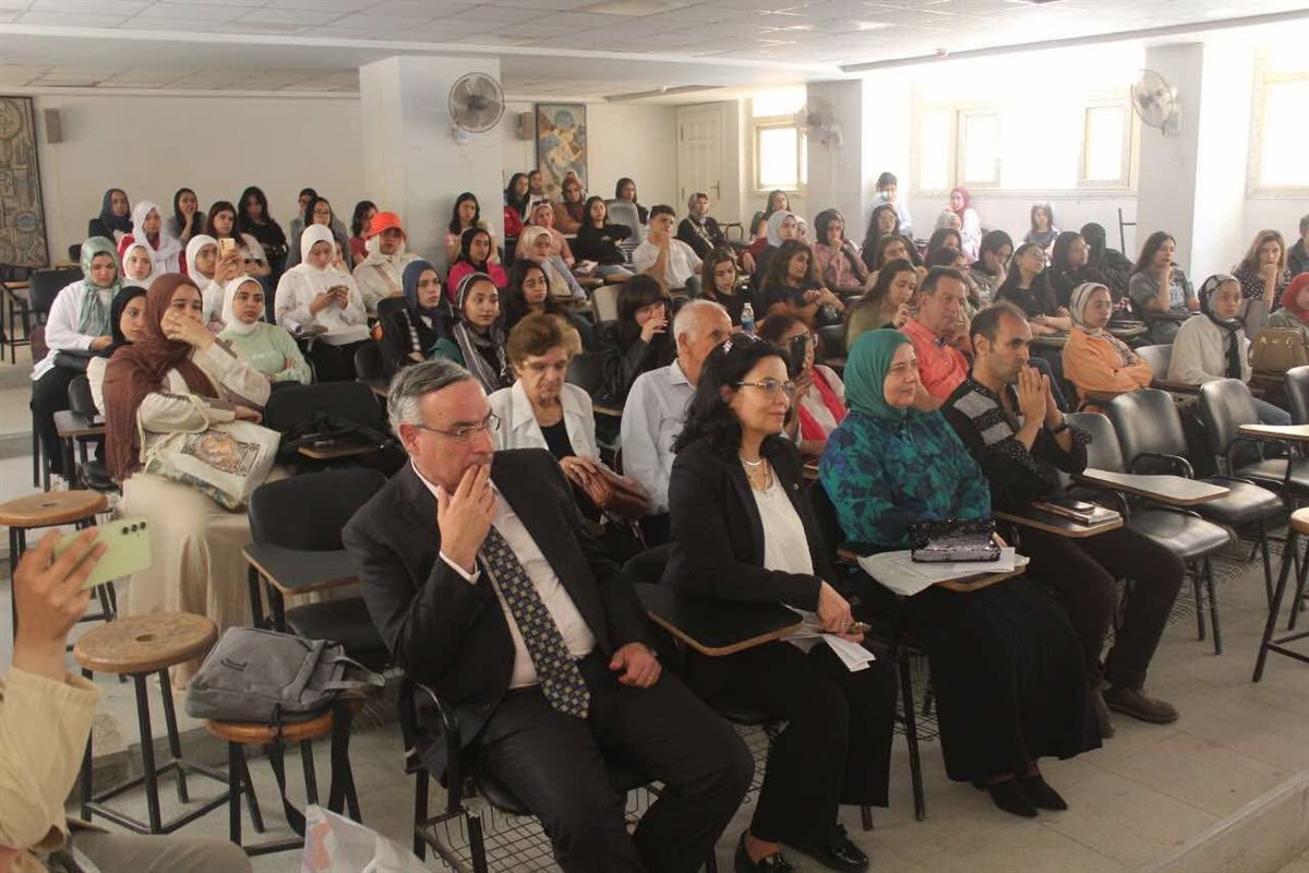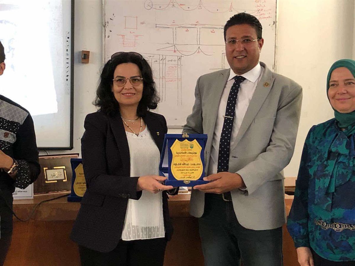 وفي كلمتها رحبت الدكتورة: نيفين غريب بالضيوف، وأشادت بمثل هذه الفعاليات الفنية المتميزة، التى تعمل على توثيق الأحداث التاريخية الهامة التي جرت على أرض مدينة الأسكندرية؛ لتؤكد على دور المدينة الرائد فى الحركة الثقافية والفنية الحديثة، معتبرة أن المعرض والندوة لهما أثرًا كبيرًا في تعريف طلبة وطالبات الكلية بالدور الريادى لفنان الكاريكاتير المصري ذو الأصول الأرمنية: ألكسندر صاروخان، وأكدت على ترحيب الكلية بمثل هذه الأنشطة والفعاليات المتميزة، التى تفتح الباب أمام توثيق فن الكاريكاتير بشكل منهجى.