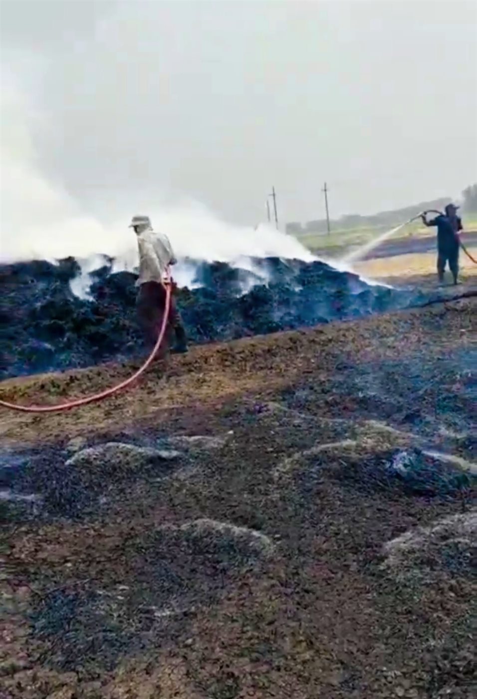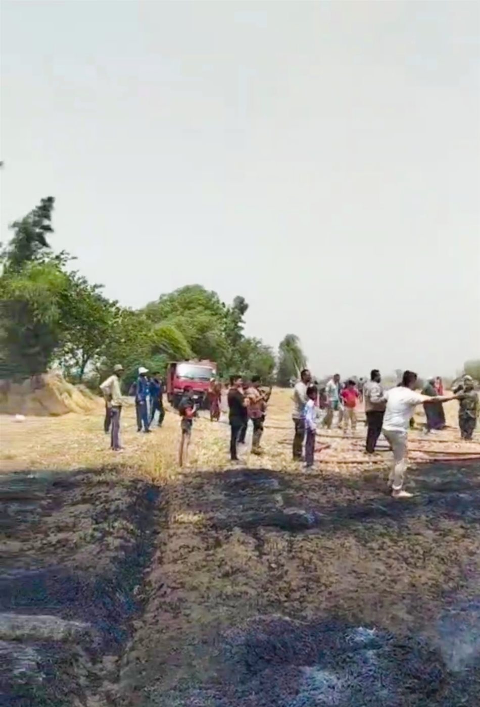 تبين من التحريات الأولية نشوب حريق في جرن قمح حوالي فدان بناحية قرية كفر ابو جندى.
