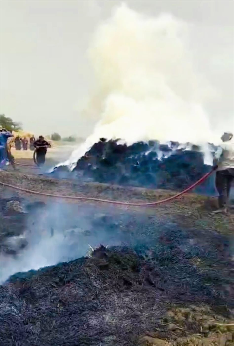 تمت السيطرة على النيران وإخمادها بمعرفة 6 سيارات لقوات الحماية المدنية ومشاركة الأهالي دون أي خسائر في الأرواح أو إصابات.