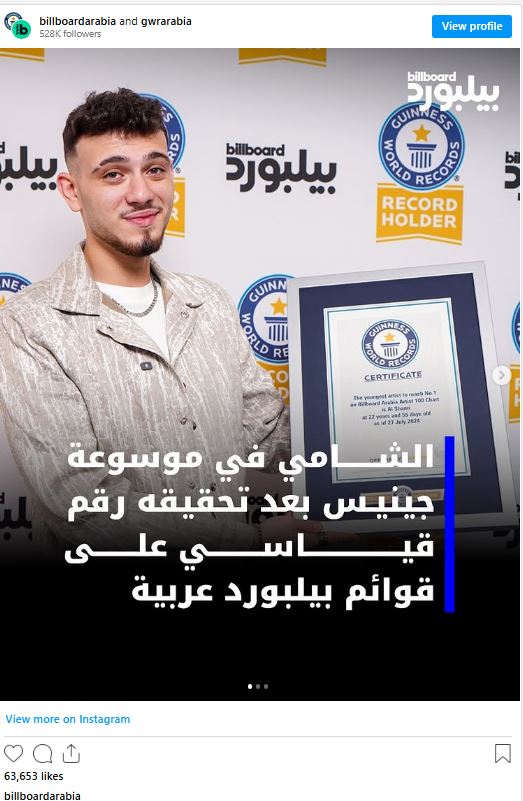تعاون "بيلبورد عربية" مع "جينيس للأرقام القياسية" أتاح توثيق هذا الإنجاز رسميًّ-ا، ما أضفى بُعدًا عالميًّا على نجاح الشامي.