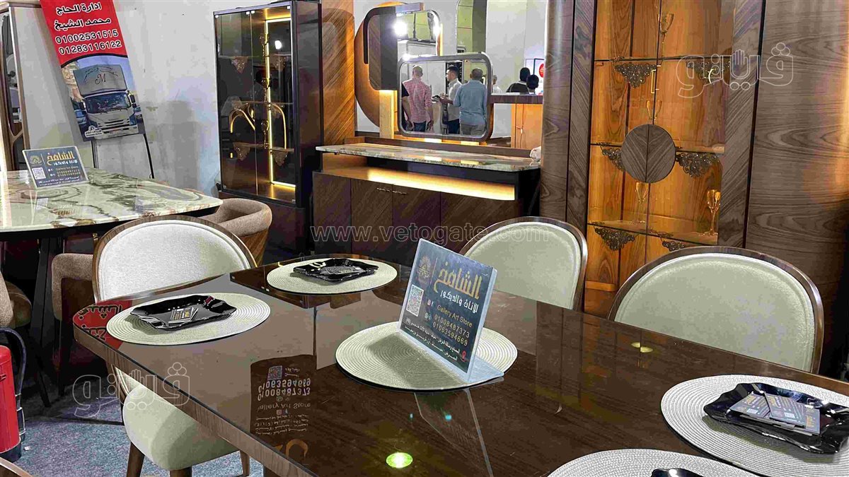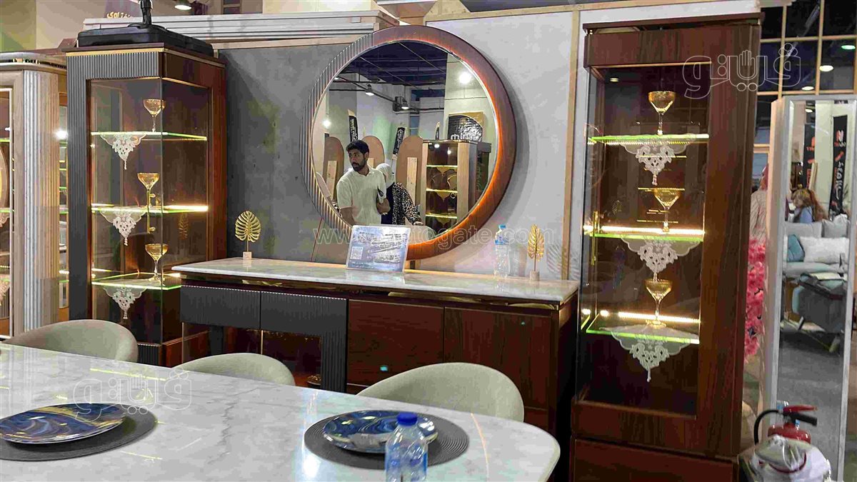 يضم المعرض أيضًا "ترابيزات بوحدة تخزين" وتشكيلة كبيرة تتميز "بالمقاسات بالأشكال بتاعتها بالتشطيب بالفينش طبعا حاجة دي كلها تشطيب من جوه زي من بره".
