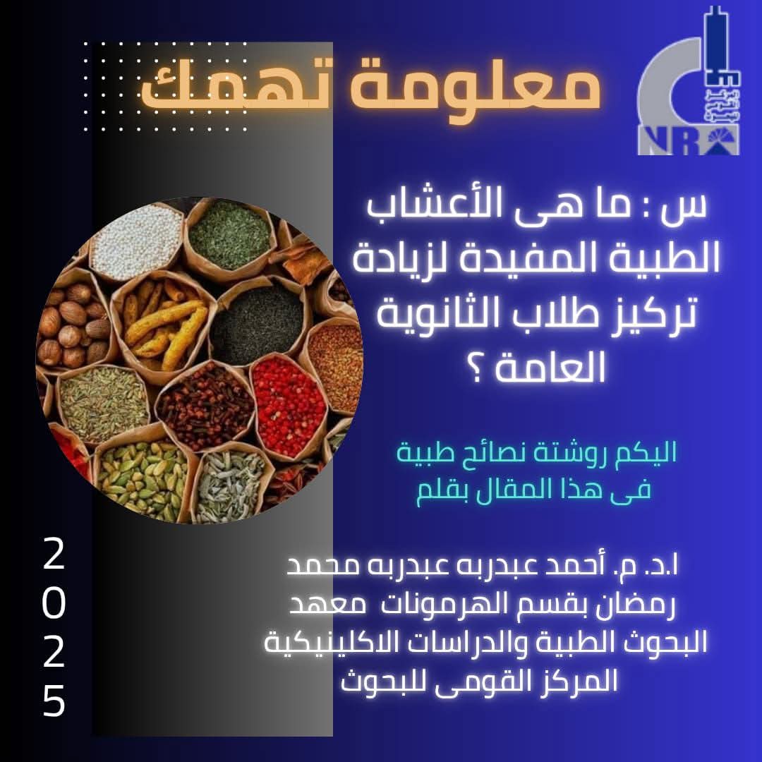 تقدِّم وزارة التعليم العالي والبحث العلمي، بالتعاون مع المركز القومي للبحوث، مجموعة من النصائح الطبية المهمة للطلاب خلال فترة الامتحانات، ضمن حملة صحتك في الامتحانات، يقدمها أحمد عبدربه عبدربه محمد رمضان رئيس قسم الهرمونات – معهد البحوث الطبية والدراسات الإكلينيكية – المركز القومي للبحوث.