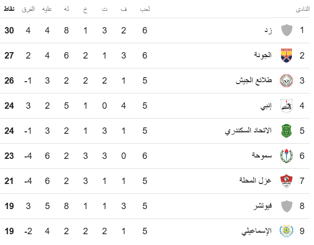ترتيب جدول مجموعة الهبوط في الدوري المصري قبل الجولة السابعة