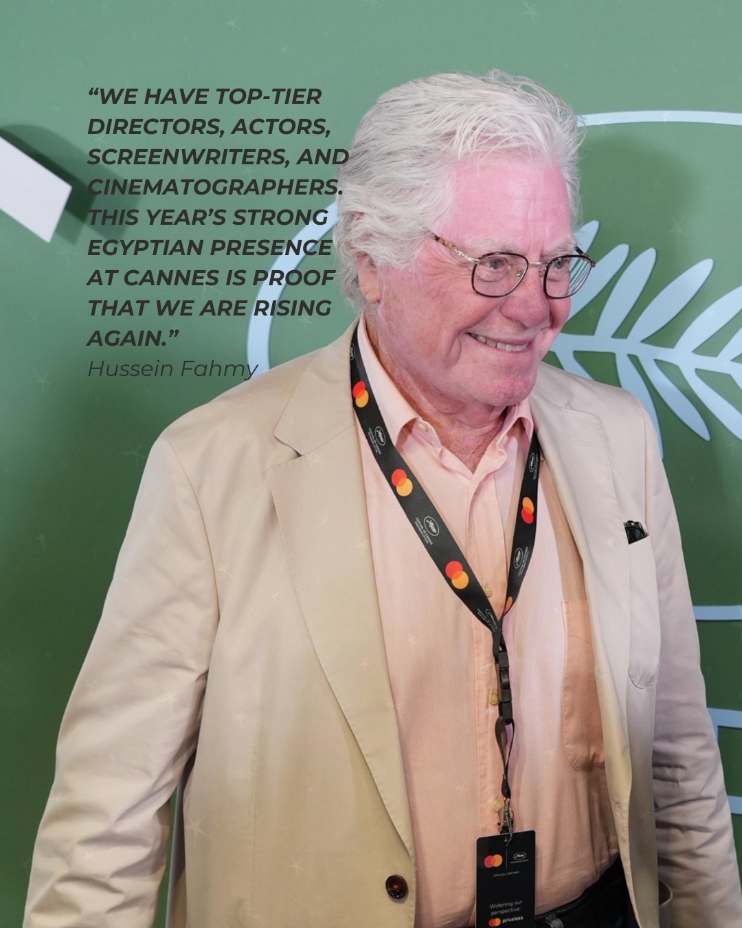 "مرت السينما المصرية بفترات كان فيها الإنتاج تجاريًا بشكل مفرط، ما أدى إلى عدم قبول بعض الأفلام في المهرجانات الدولية. لكننا اليوم نشهد تحسنًا ملحوظًا، مع وجود مخرجين وممثلين وكتاب سيناريو ومديري تصوير من الطراز الرفيع. هذا العام، نرى مشاركة قوية لأفلام مصرية في مهرجان كان، مما يدل على أننا بدأنا ننهض مرة أخرى".
