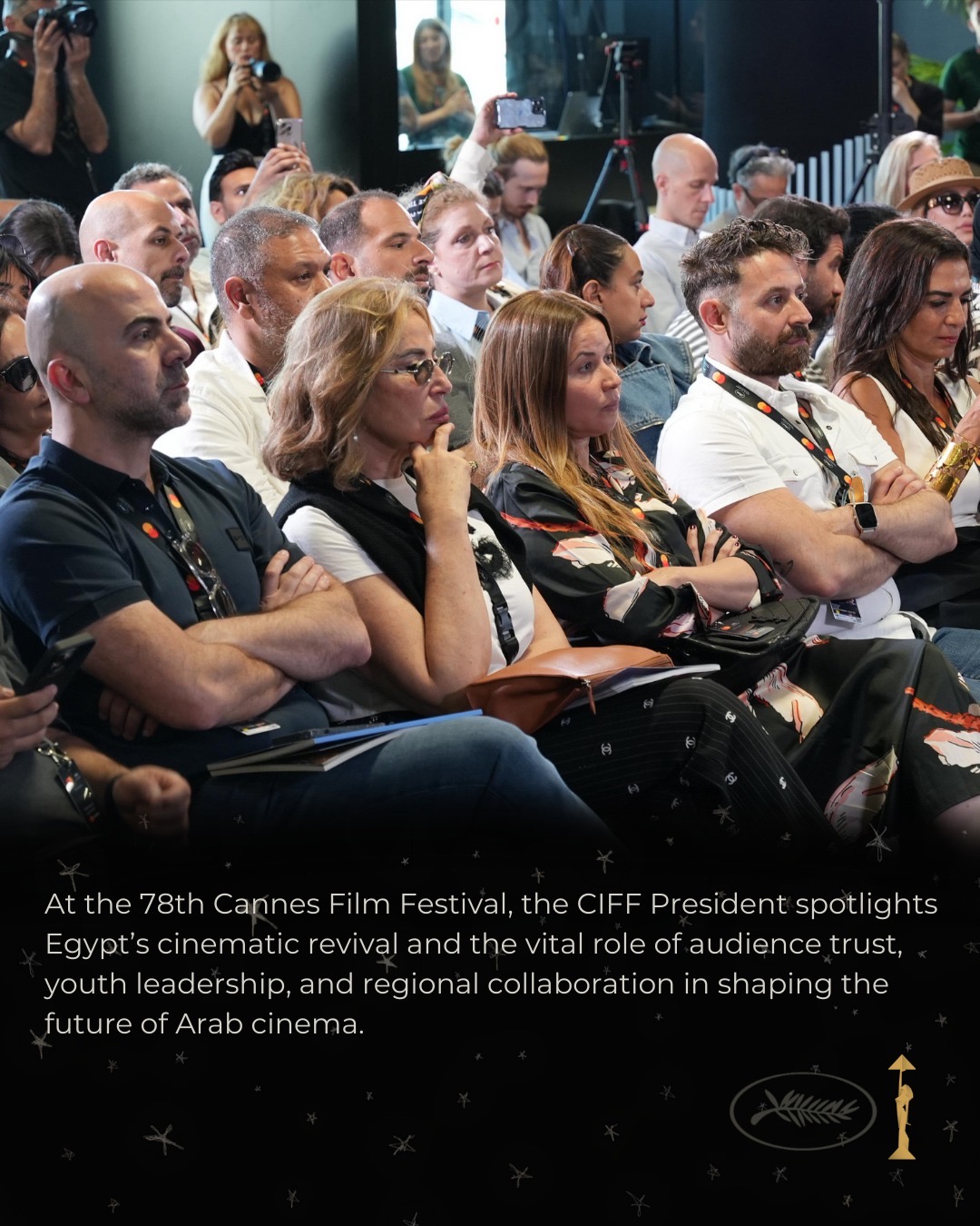 نظمت الجلسة بالتعاون بين مركز السينما العربية وسوق الأفلام بمهرجان كان (MDF_Cannes)، وأدارها الصحفي نيك فيفاريلي، مراسل مجلة Variety لمنطقة إيطاليا والشرق الأوسط، بحضور نخبة من صناع السينما والفنانين ورجال الأعمال، من بينهم الفنانة يسرا، ورئيس مهرجان الجونة السينمائي سميح ساويرس، والمدير التنفيذي لمهرجان الجونة عمرو منسي، والمدير العام للجنة مصر للأفلام أحمد سامي بدوي، بالإضافة إلى المخرج مراد مصطفى والمنتجة سوسن يوسف.