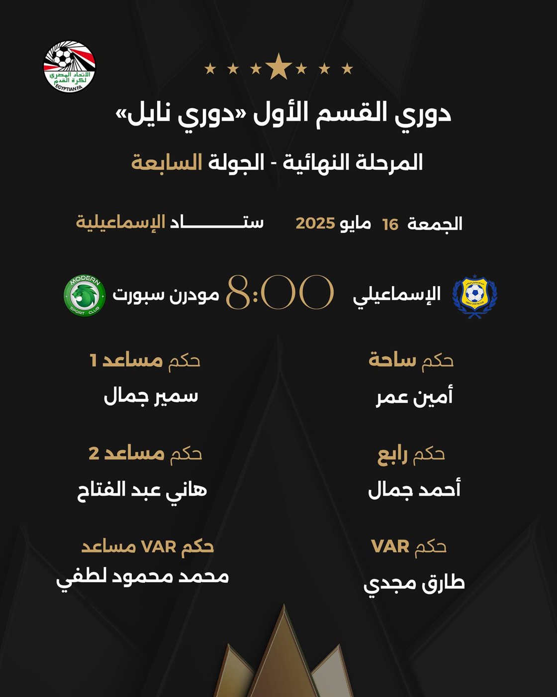 الإسماعيلي ضد مودرن سبورت - 8 مساءً - الجمعة 16 مايو.