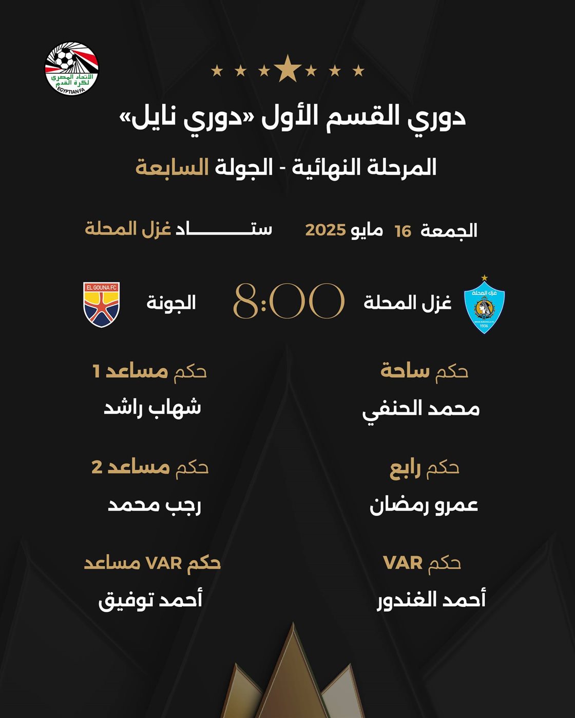غزل المحلة ضد الجونة - 8 مساءً - الجمعة 16 مايو.