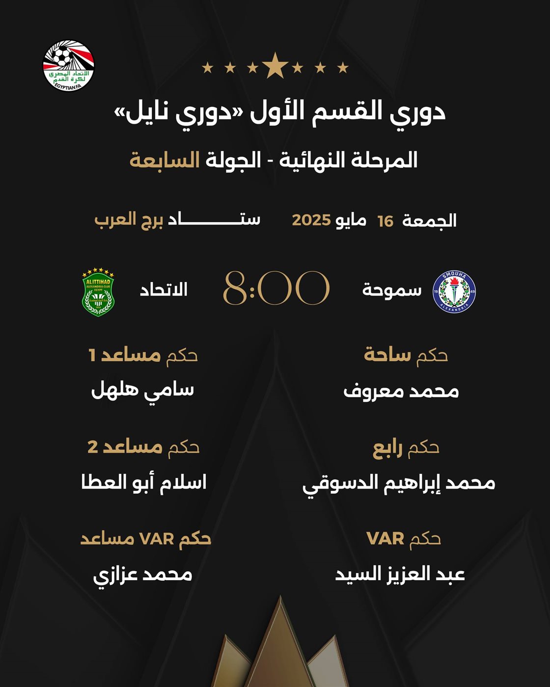 سموحة ضد الاتحاد السكندري - 8 مساءً - الجمعة 16 مايو.
