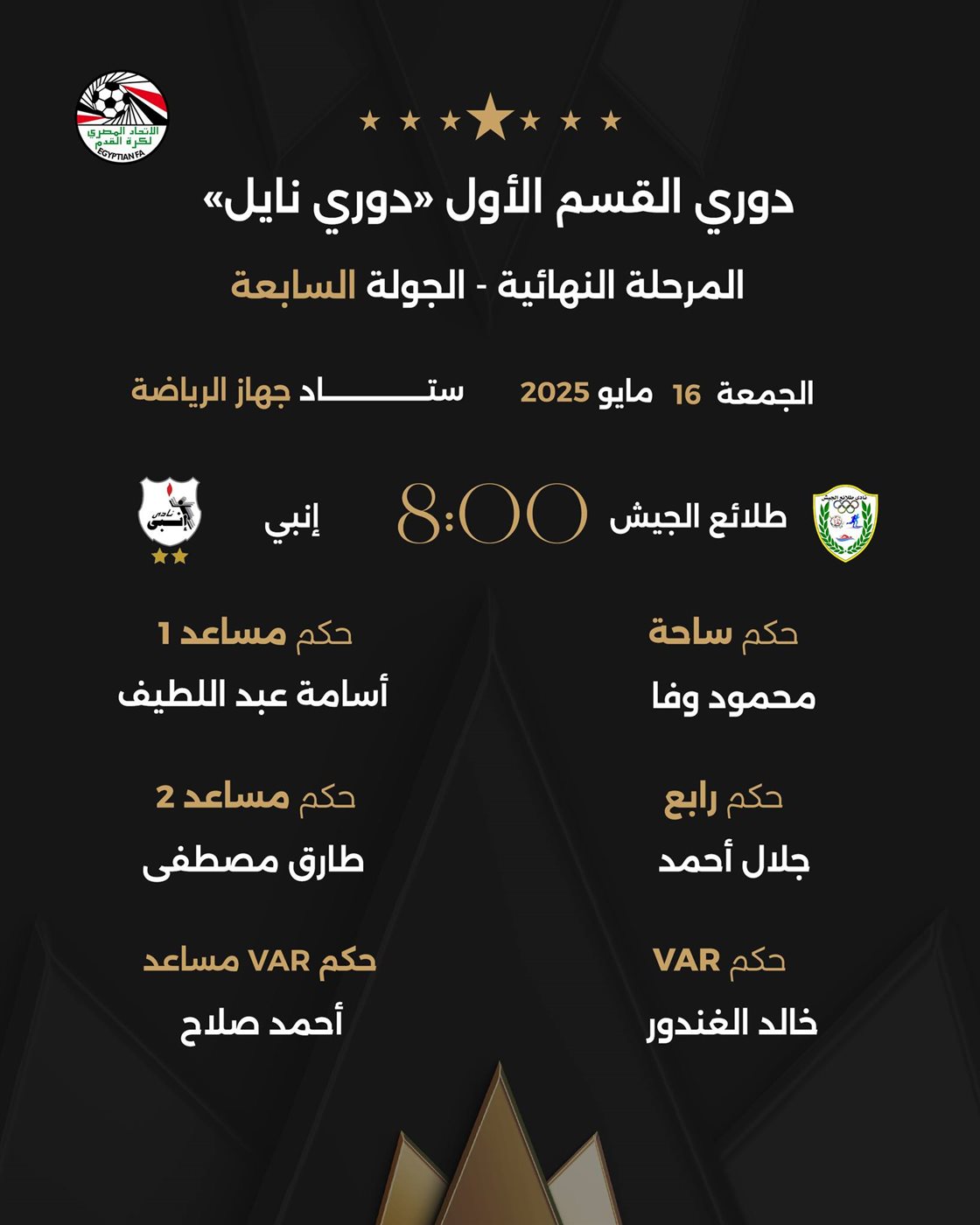 طلائع الجيش ضد إنبي - 8 مساءً - الجمعة 16 مايو.