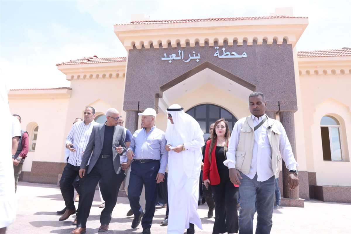 وتوجه نائب رئيس مجلس الوزراء للتنمية الصناعية وزير الصناعة والنقل إلى محطة بئر العبد والتي تم افتتاحها ضمن الافتتاح الرئاسي لمشروع إعادة تأهيل وتطوير المسافة من “الفردان حتى بئر العبد” بطول 100 كم في أكتوبر الماضي، حيث تفقد الوزير أرصفة المحطة وتابع انتظام حركة القطارات في المسافة من بئر العبد حتى القنطرة شرق ثم شاهد الوزير عرضا تقديميا لمشروع إنشاء خط سكة حديد جديد يمتد من محطة بئر العبد عند الكيلو 100 ويمر شرقا بالعريش عند الكيلو 183 بإجمالي طول 83 كم ثم جنوبا برأس النقب (مطار طابا) عند الكيلو 441 وحيث يبلغ إجمالي طول الخط 341 كيلومترًا و يشتمل على الوصلة من بئر العبد إلى العريش بطول 83 كم الجاري تنفيذها بالإضافة إلى وصلات ( ميناء العريش بطول 12 كم، والوصلة من العريش إلى الحسنة بطول 83 كم، والوصلة من الحسنة إلي طابا بطول 175 كم )وحيث جاري اعتماد الرسومات وتسكين الشركات المنفذة لهذه الوصلات الثلاثة.