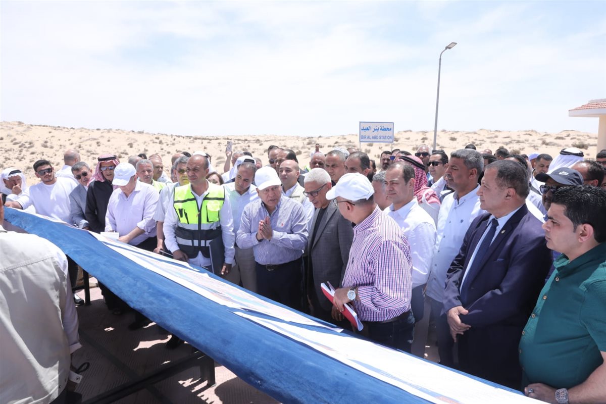 واعقبها تفقد الوزير لمواقع العمل في مشروع إنشاء خط سكة حديد في المسافة من بئر العبد وحتى العريش بطول 83 كم حيث تم متابعة اعمال تنفيذ الجسر الترابي للخط والذي تنفذه عدد من الشركات المصرية الوطنية (8 شركات منفذة) وكذلك أعمال تنفيذ محطات المشروع البالغة 7 محطات وهي محطات (السادات والتي تخدم قرية المدادات وتجمع المويلح وقرية سلمنة، والتلول وتخدم أهالي قرية التلول، وشهداء الروضة التي تخدم قرية شهداء الروضة وقرية المزار ومصنع الملح والتي تخدم مصنع الملح ومحمية الزرائيق، والمساعيد التي تخدم منطقة المساعيد، قرية الميدان، تجمع المرية آل رويعي، تجمع البراهمة، نادي الهجن الرياضي المصري، السوق التجاري للجملة، جامعة سيناء- وسط العريش وتخدم وسط العريش، مطار العريش وتخدم مدينة العريش (قسم ثان) ومطار العريش الدولي على بعد 3 كم جنوبًا ).