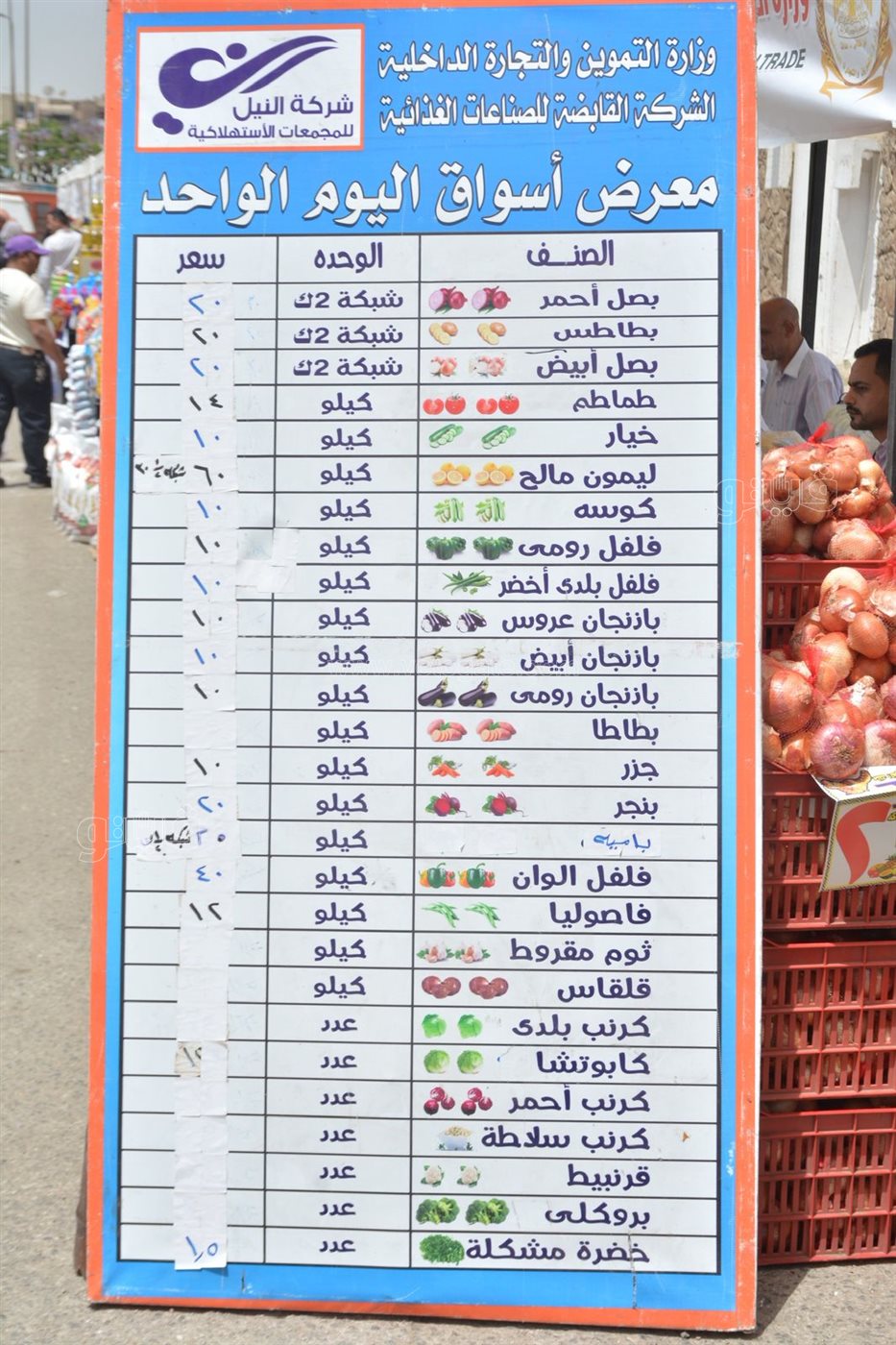 وسوق اليوم الواحد يعمل من الساعة الثامنة صباحًا وحتى الخامسة مساءً، ويتم الدفع فيه بأكثر من ٤٠ سيارة قابلة للزيادة بالتنسيق مع الشركة القابضة للصناعات الغذائية بوزارة التموين لبيع كافة السلع الأساسية كالزيت والسكر والأرز والمسلى والمكرونة، والمنظفات والصابون، إلى جانب اللحوم الطازجة، والدواجن، والأسماك، والألبان والجبن، والخضار والفاكهة، والعصائر، والعسل، والبقوليات.