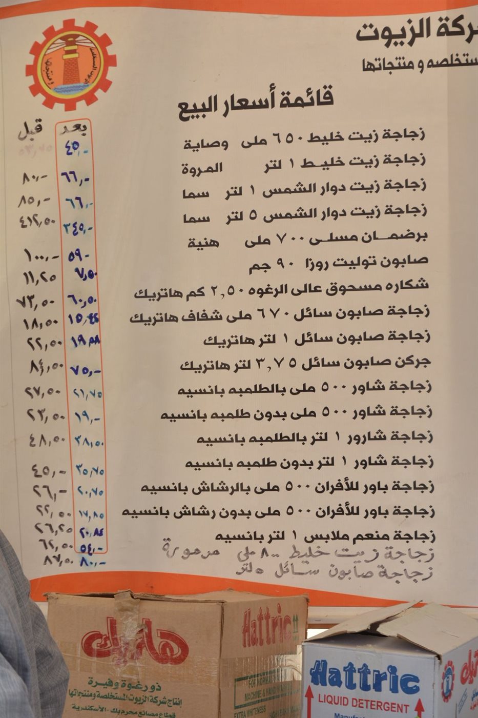 طرحت الشركة القابضة للصناعات الغذائية التابعة لوزارة التموين والتجارة الداخلية بالتعاون مع شركات القطاع الخاص كميات كبيرة من السلع الأساسية أبرزها الأرز، الزيوت، المكرونة، الدقيق، والبيض، بجانب اللحوم والدواجن المجمدة، والمنظفات، والبهارات، والخضروات والفواكه المختلفة.