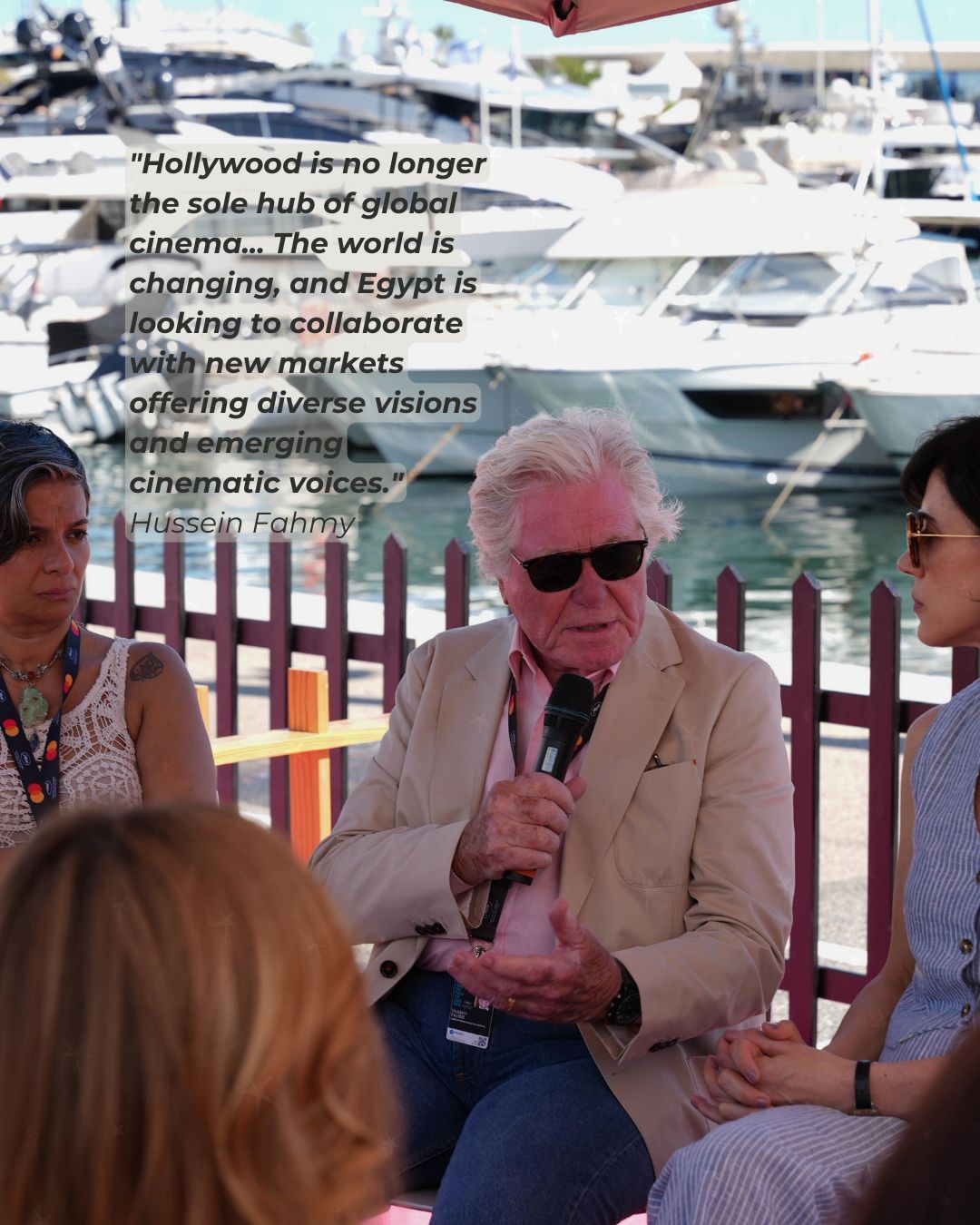 شارك الفنان الكبير حسين فهمي، رئيس مهرجان القاهرة السينمائي الدولي، في جلسة نقاشية متميزة حملت عنوان "من هوليوود إلى القاهرة: ربط الصناعات السينمائية الأمريكية والمصرية"، وذلك ضمن البرنامج الرسمي لجناح مصر بسوق مهرجان كان السينمائي (Marché du Film).