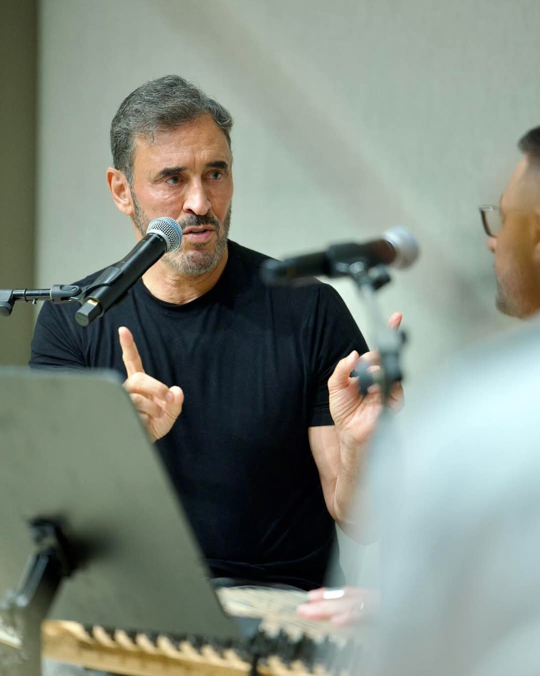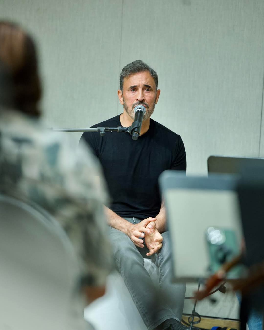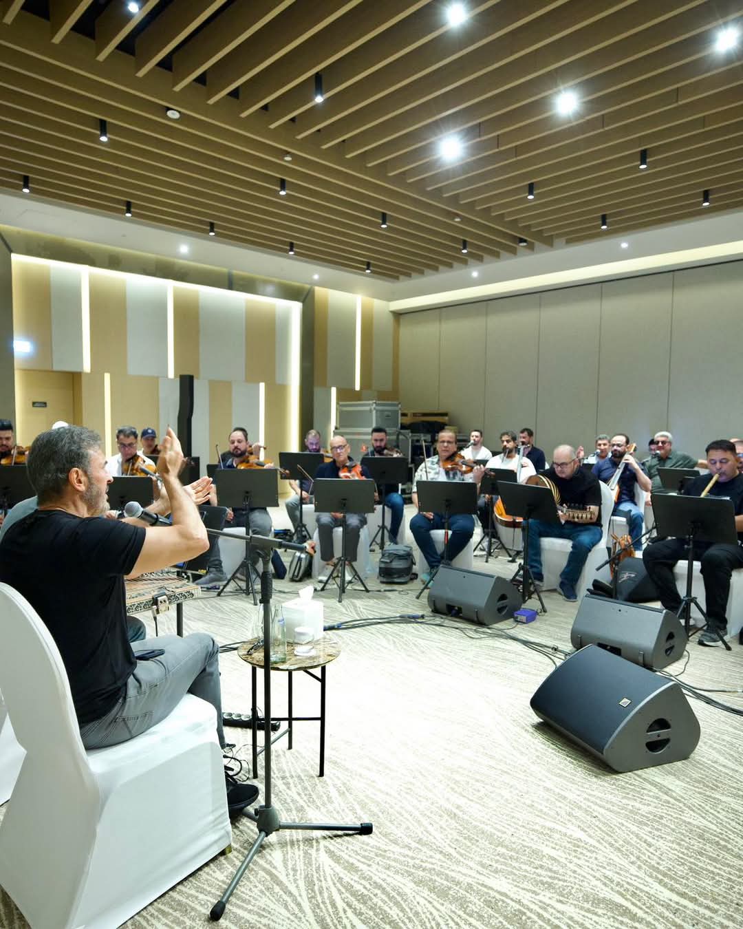 وأرفق كاظم الساهر صور البروفات بتعليق: أتمرّن اليوم استعدادًا للغد… قلبي معكم، ومتشوّق ألتقيكم على المسرح.