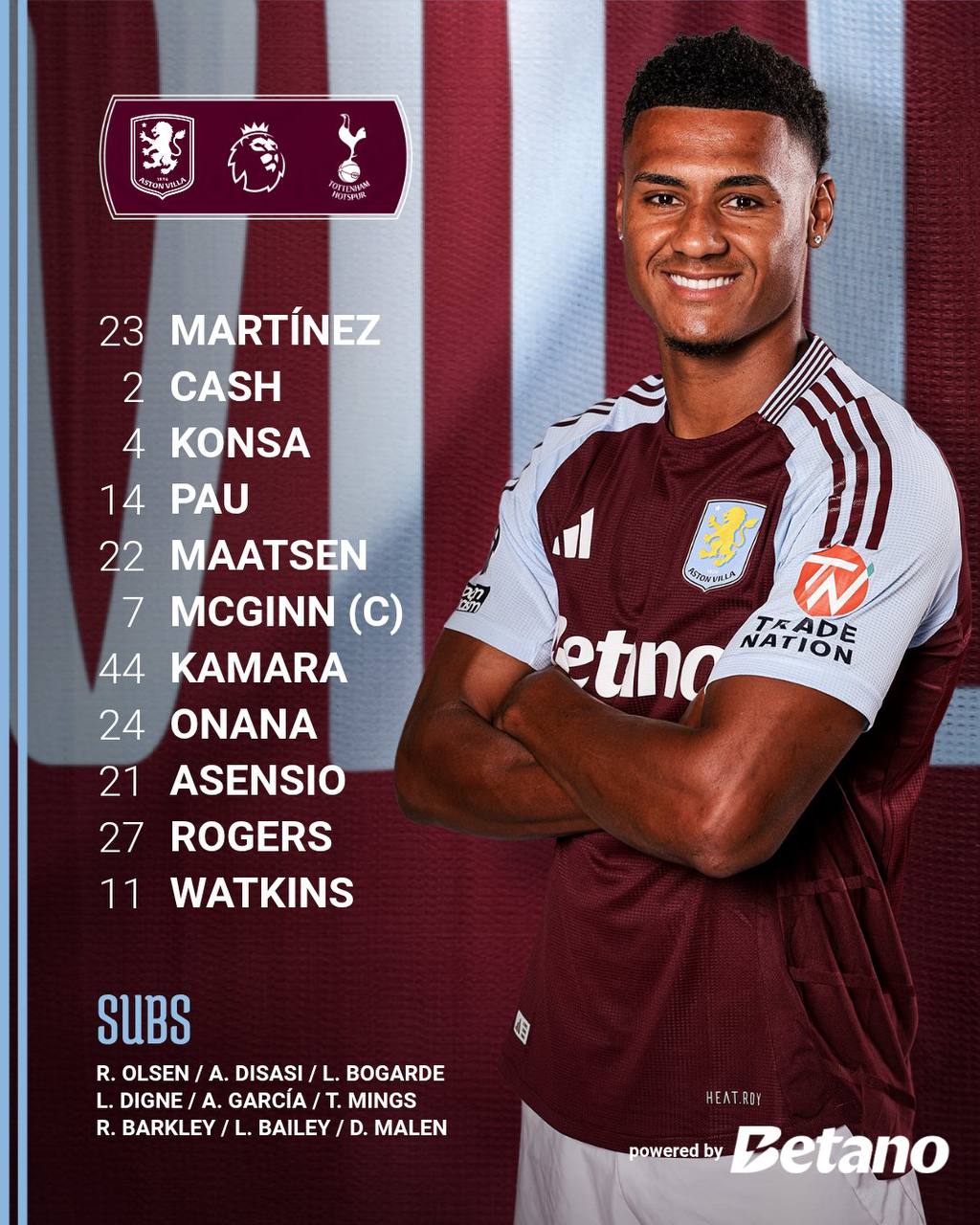 وأعلنت شبكة قنوات بي إن سبورتس القطرية إذاعة بث مباشر لمباراة أستون فيلا ضد توتنهام عبر شاشتها، بصفتها الناقل الحصري لمباريات الدوري الإنجليزي الممتاز في الشرق الأوسط وشمال إفريقيا.