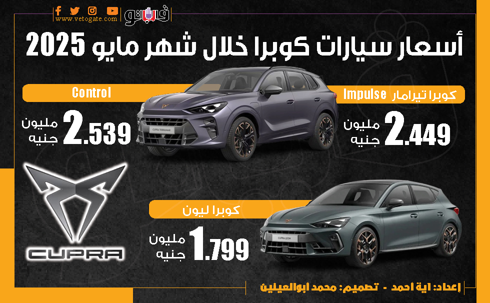 أسعار سيارات كوبرا خلال شهر مايو 2025 (إنفوجراف)