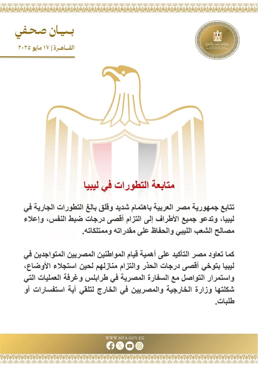 مصر تصدر بيانا جديدا بشأن التطورات في ليبيا