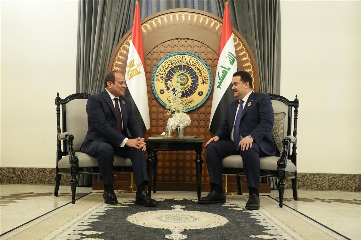 السيسي من بغداد: الشعب الفلسطيني يتعرض لجرائم إبادة ممنهجة، السلام الدائم والعادل يظل بعيد المنال ما لم تقم الدولة الفلسطينية، إسرائيل اتخذت من التجويع سلاحا ومن التدمير نهجا