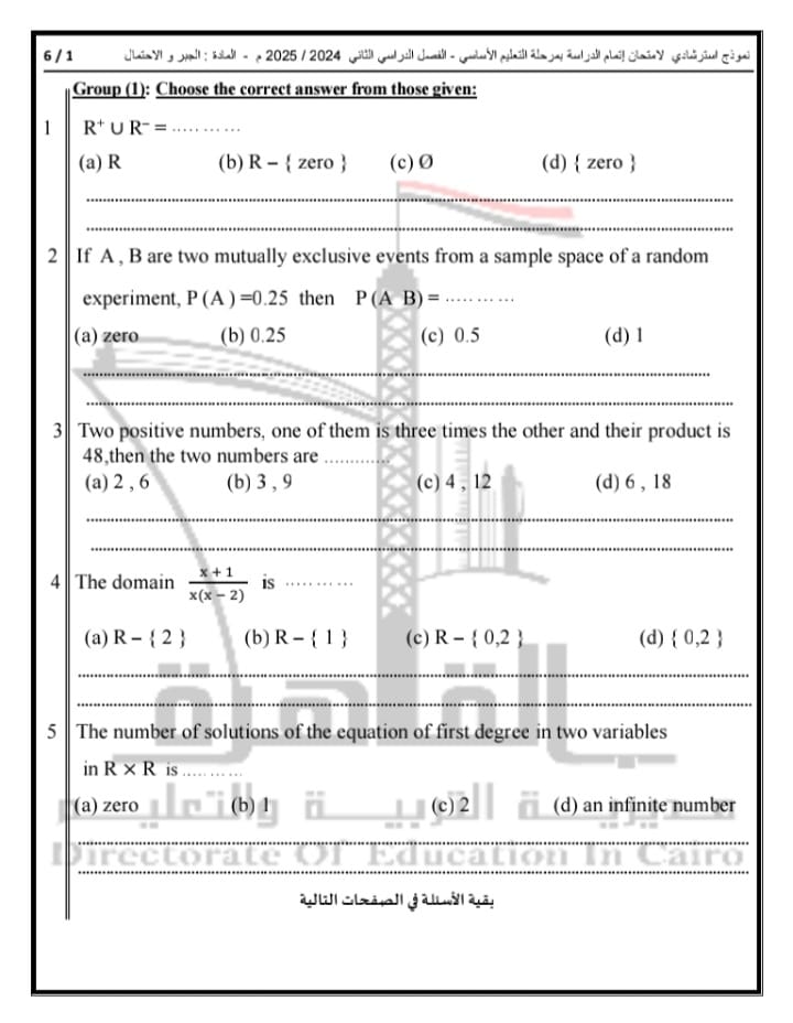 أعلنت مديرية التربية والتعليم بالقاهرة عن مواصلتها نشر نماذج امتحان البوكليت في مادة الجبر والاحتمال بالإنجليزية (math)، وذلك لتعزيز قدرة الطلاب على الإجابة بكفاءة وتميز.