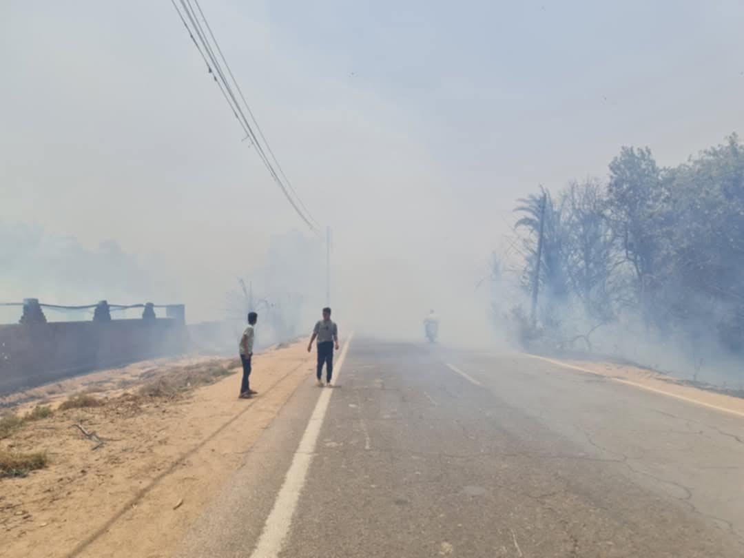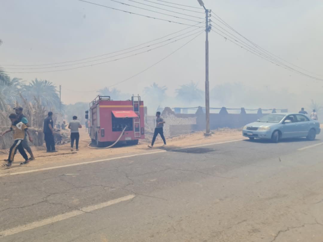 حريق في مزارع نخيل بالوادي الجديد والحماية المدنية تدفع بسيارات الإطفاء (صور)