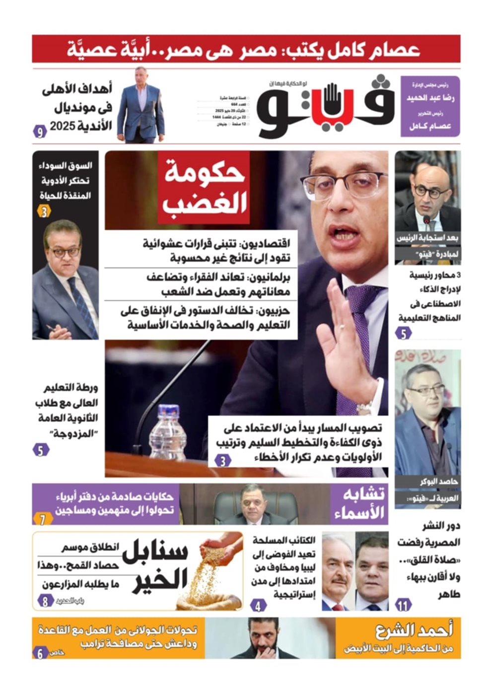 تنشر فيتو في عددها الجديد ملفا خاصا عن أداء الحكومة خلال الفترة الماضية، والذي وصفه عدد من الاقتصاديين بتكرار تبني القرارات العشوائية، والذي يقود إلي نتائج غير محسوبة، بينما فسره البرلمانيون بأن الحكومة تعاند الفقراء وتضاعف معاناتهم وتعمل ضد الشعب.