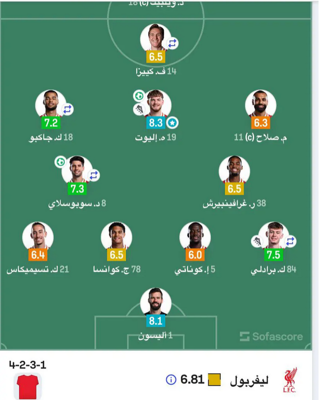وبحسب موقع سوفا سكور، فإن صلاح نال تقييما 6.3 بعد أن قدم مستويات باهتة في مباراة برايتون.