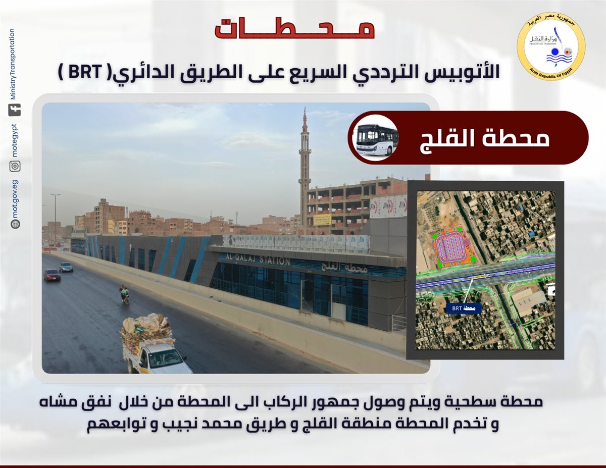 أولا:- مشروع الأتوبيس الترددي السريع BRT حول القاهرة الكبرى بمراحله الثلاثة يبلغ طوله 113كم، ويشمل عدد 48 محطة، بالإضافة ومواقف ومحطة شحن رئيسية + 3 محطات شحن فرعية.