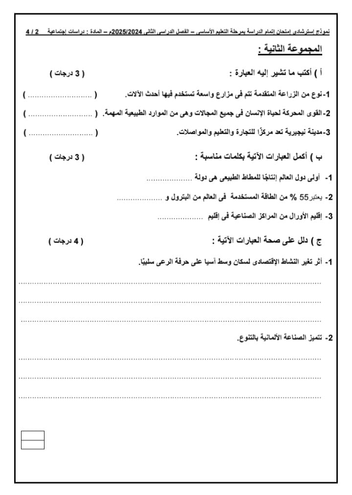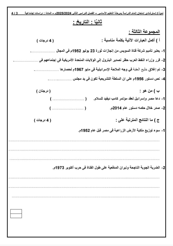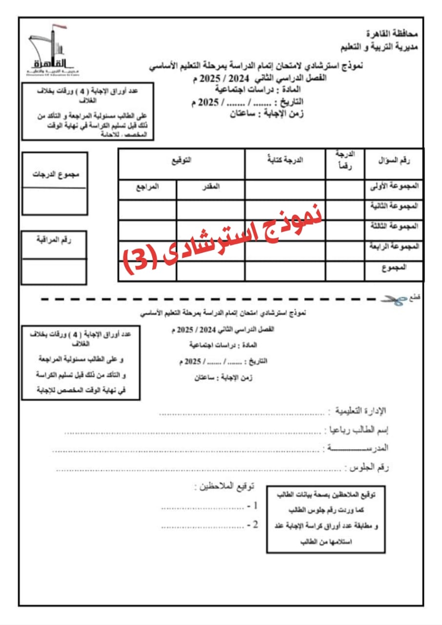 لطلاب الشهادة الإعدادية، نموذج بوكليت امتحان الدراسات الاجتماعية