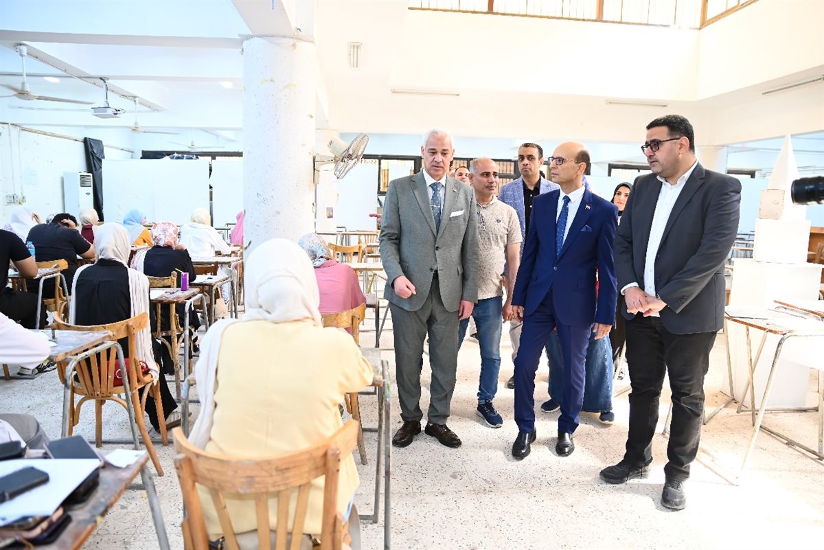 ورافق الدكتور أحمد المنشاوي خلال جولته التفقدية، الدكتور أحمد عبد المولى نائب رئيس الجامعة لشئون التعليم والطلاب، وذلك بحضور عدد من عمداء ووكلاء كليتي الحقوق والفنون الجميلة، وأعضاء هيئة التدريس، والمشرفين على اللجان.