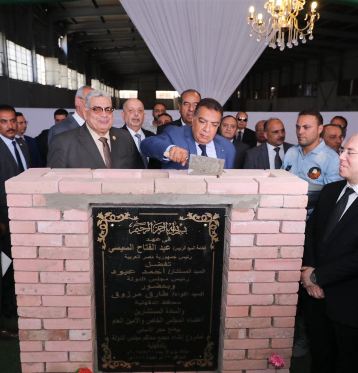 رئيس مجلس الدولة يضع حجر الأساس لمجمع المحاكم الجديد بالدقهلية (صور)