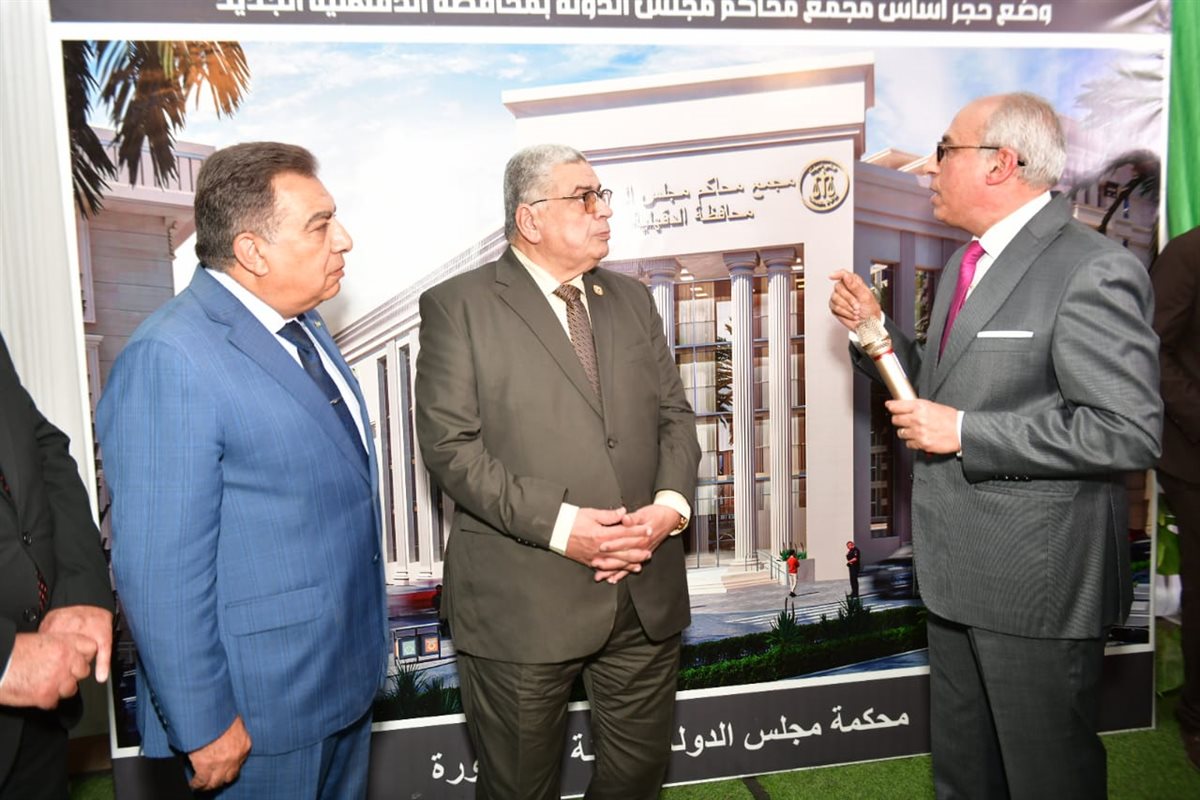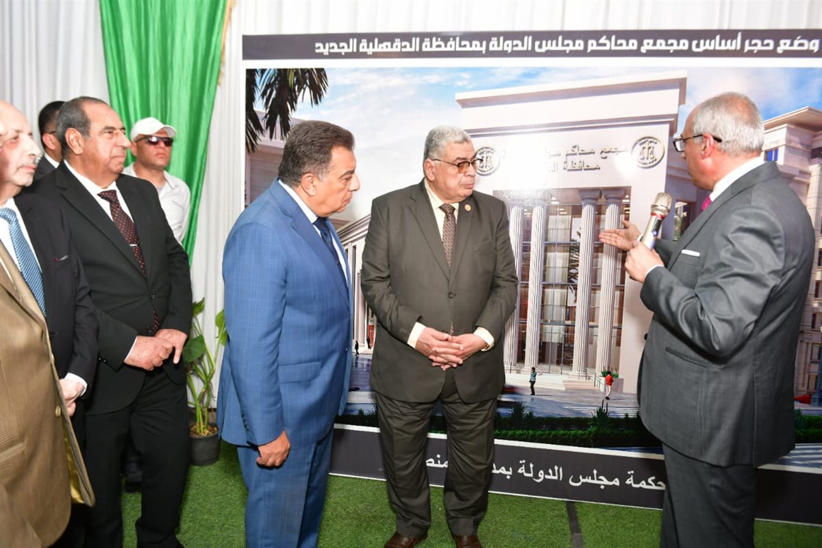 محافظ الدقهلية يستقبل رئيس مجلس الدولة ويضعان حجر الأساس لمبنى مجلس الدولة ويتفقدان المبنى المؤقت لمجمع المحاكم بالمنصورة