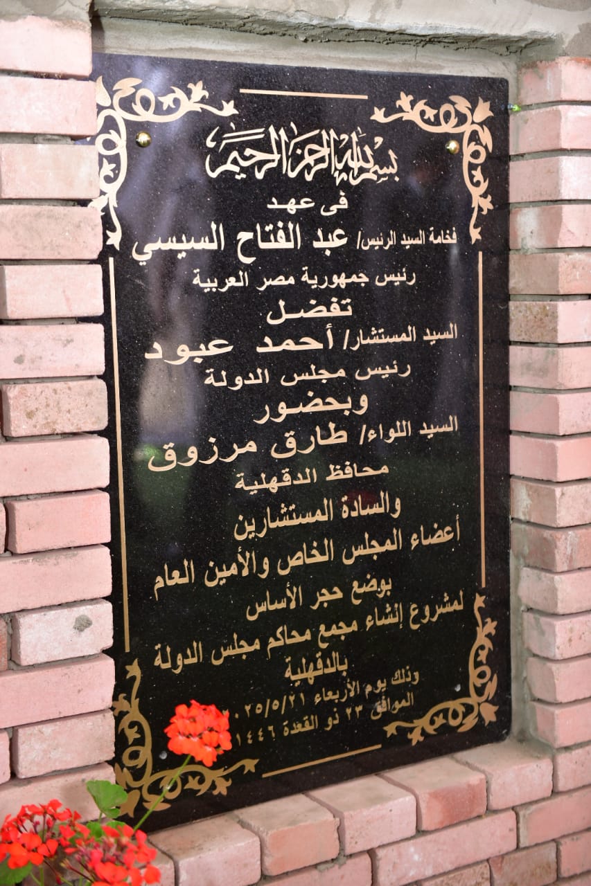 كما وضع محافظ الدقهلية ورئيس مجلس الدولة، حجر الأساس للمبنى الجديد لمجمع محاكم المجلس، الذي يقام على مساحة 400 متر، ويتكون المبنى من 2 بدروم، 2 دور أرضي، 6 أدوار علوية متكررة، حيث استعرضا التصميم الإنشائي للمبنى.