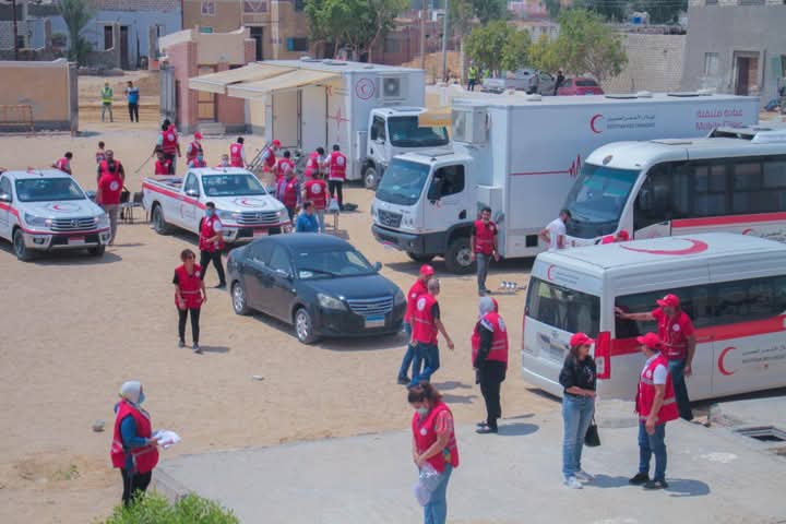 كما يقدم الهلال الأحمر المصري خدمات الكشف الطبي، الدعم النفسي، التوعية الصحية، وتوزيع ادوات حماية شخصيه، عبر العيادات المتنقلة المنتشرة في الميادين الرئيسية والأماكن النائية والأكثر احتياجًا، هذا إلى جانب تواجدها على المعابر في أوقات الأزمات.