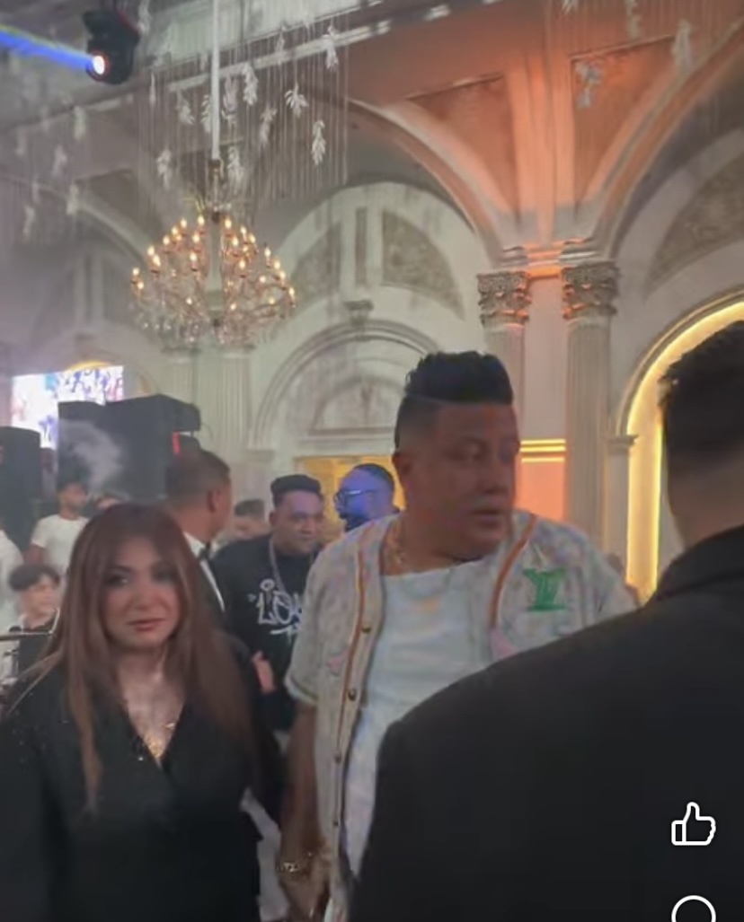 وحرص حمو بيكا على حضور حفل زفاف نور التوت واصطحب معه زوجته.
