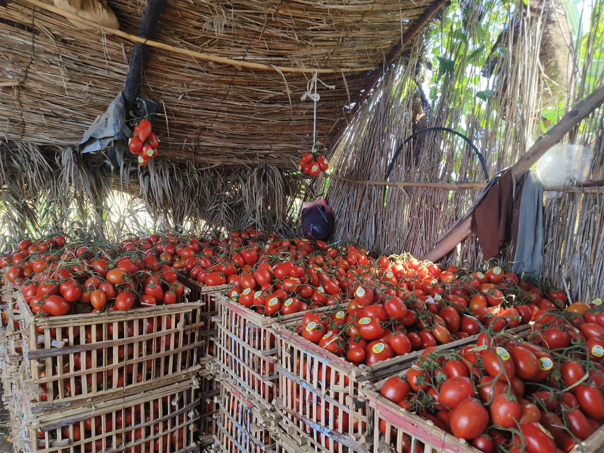 رصدت فيتو من خلال جولة داخل أحد حقول الطماطم بشائر الخير تتلألأ للمحصول الجاهز للتصدير والتخزين والتجفيف.