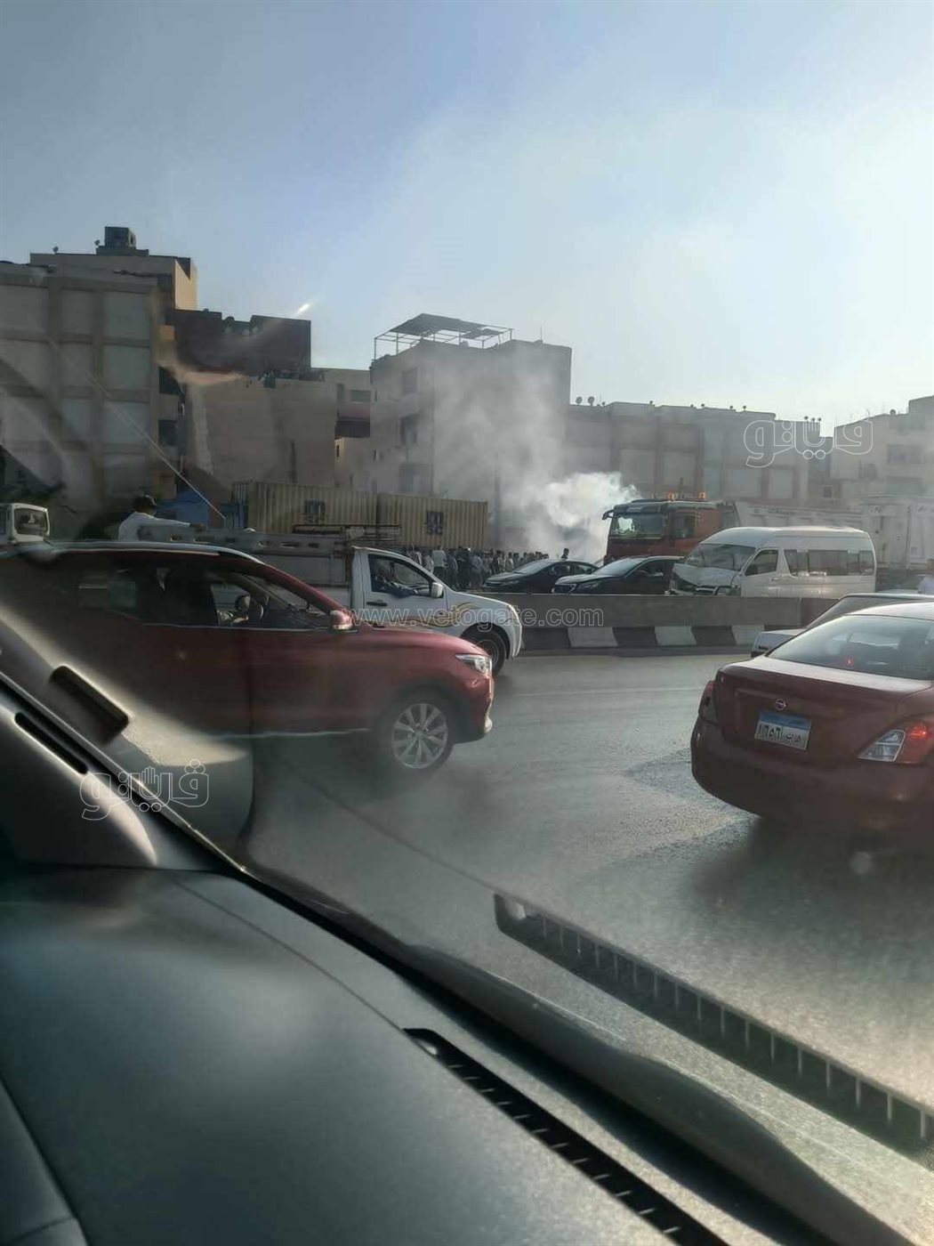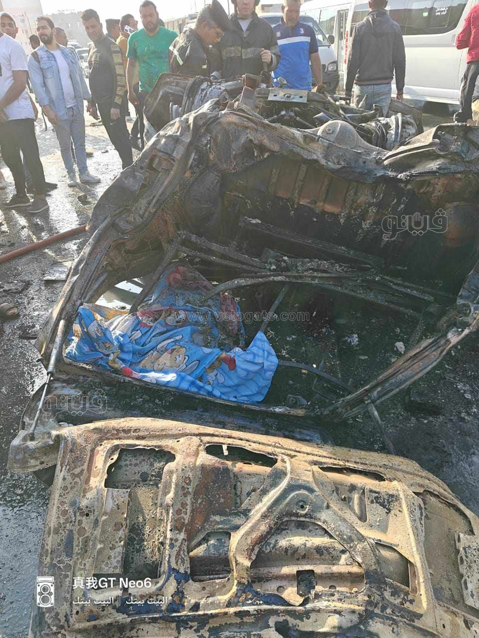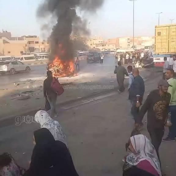حادث دائري المنيب، مصرع شخص وإصابة 15 آخرين وتفحم سيارة بالكامل (صور)