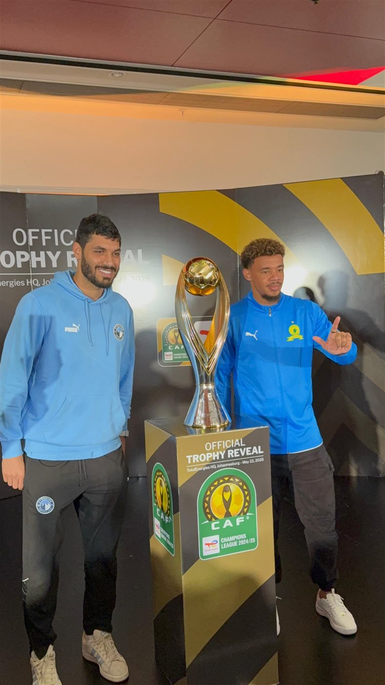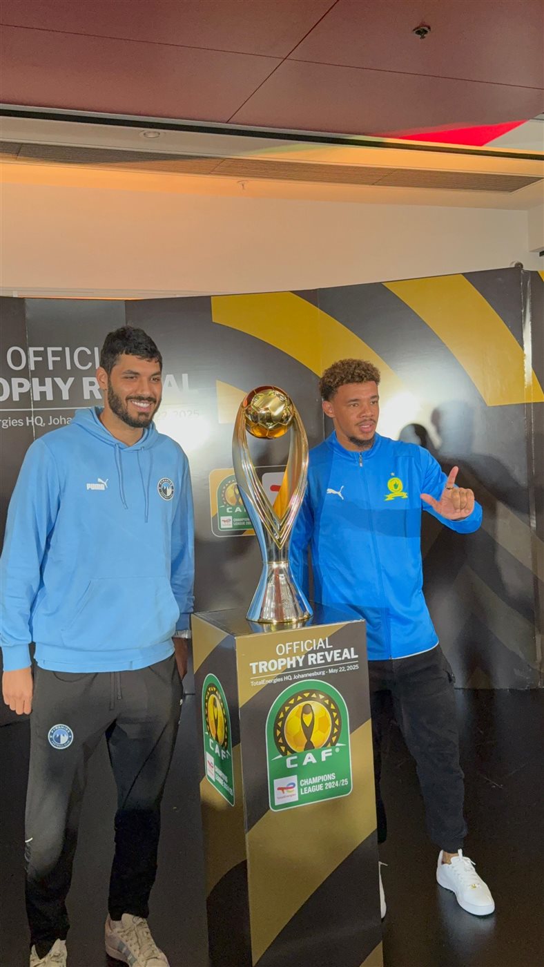 جبر وحارس صن داونز يلتقطان صورة تذكارية مع الكأس الجديدة لدوري الأبطال