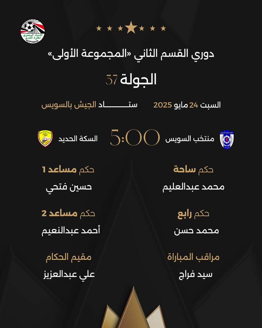 منتخب السويس ضد السكة الحديد - 5 مساء