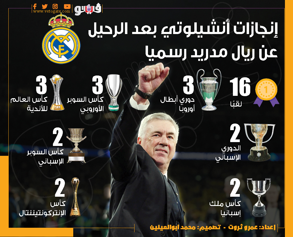 إنجازات أنشيلوتي بعد الرحيل عن ريال مدريد رسميا (إنفوجراف)