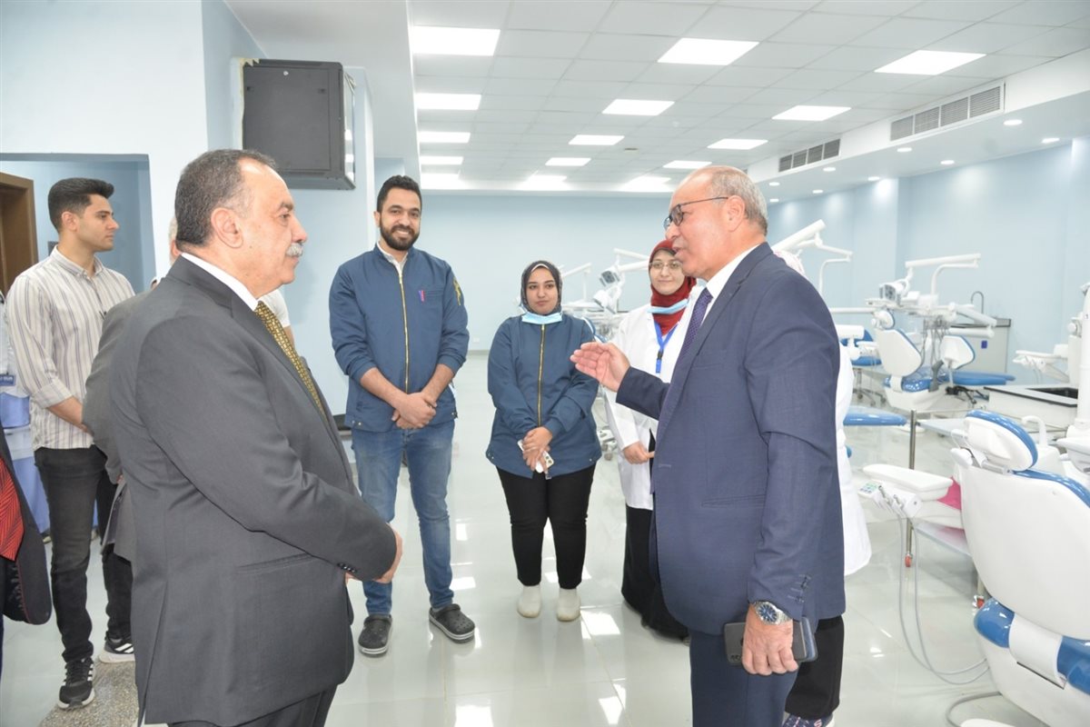 وتضمنت الجولة أيضًا زيارة كلية طب الفم والأسنان، حيث تفقد المحافظ عيادة التركيبات المتحركة، ومعمل كراسي الأسنان، والقاعات الدراسية، واستمع إلى شرح تفصيلي حول الخدمات الطبية والتعليمية المقدمة للطلاب والمترددين.