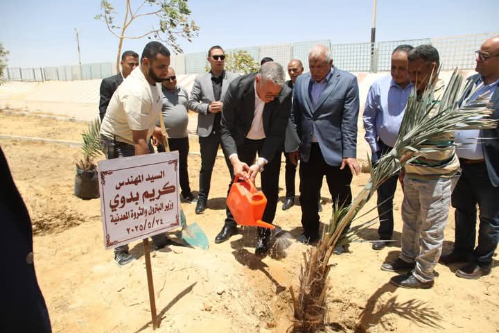 وعلى هامش الزيارة،قام الوزير بتفقد حديقة ٣٠ يونيو بالخارجة، وغرس نخلة في إطار المبادرة الرئاسية للتوسع في زراعة النخيل وإنتاج التمور، مثمنًا ما حققته المحافظة في مجال التوسع في الرقعة الزراعية وترسيخ دائم التنمية المستدامة.